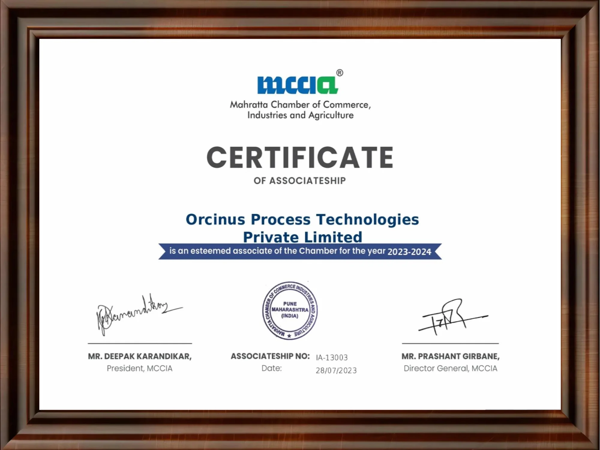 MCCIA Certificate
