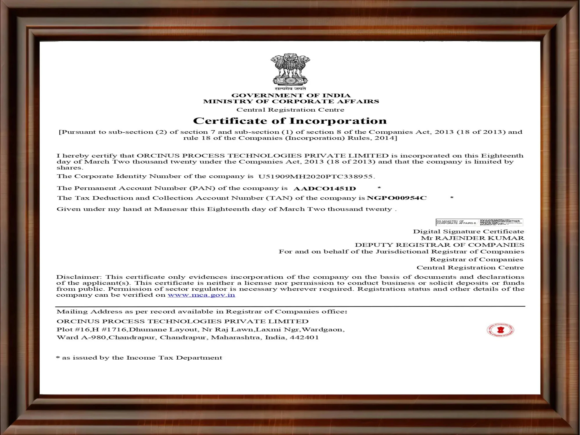 Certificate of Incorporation
